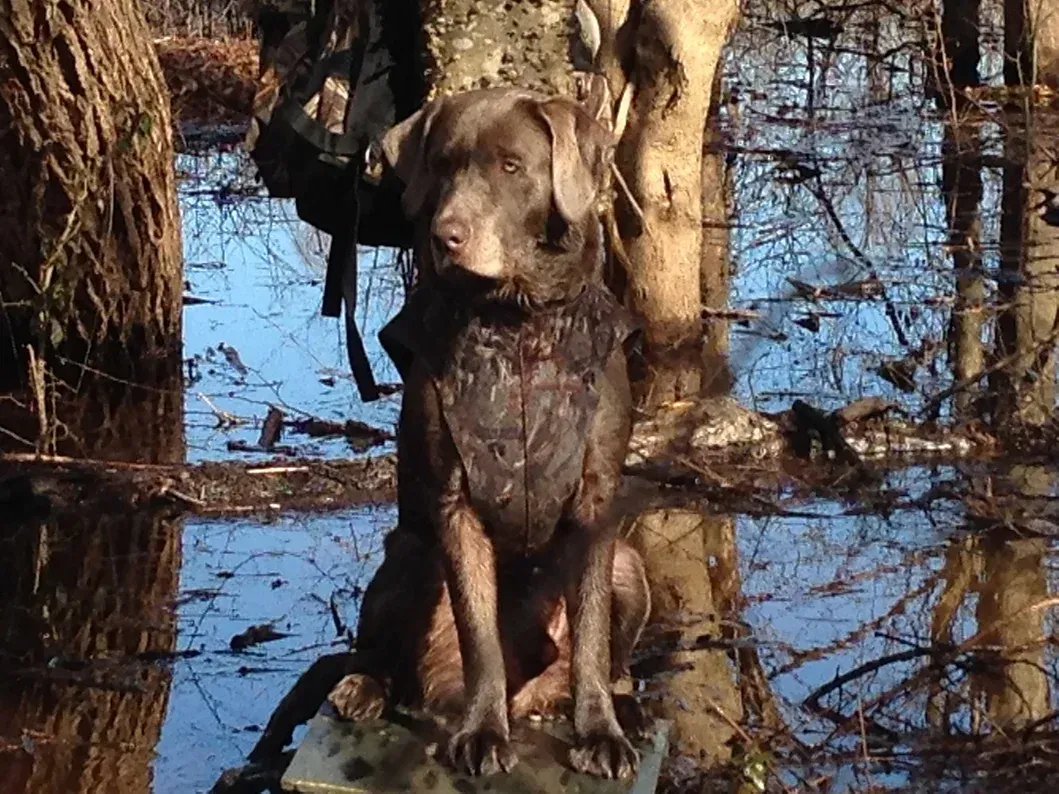 Sako was born October 24th, 2013 and is AKC registered. He is our oldest baby. This guy is laid back, smart, obedient, great with kids. Sako is an experienced duck hunter and loves the water.